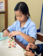 The children collaborated and used coloured sweets to create 2D and 3D edible patterns and sequences.